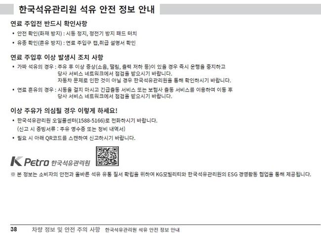 KGM, 국내 최초로 자동차 취급설명서에 석유 안전 정보 수록