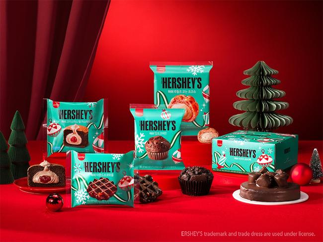 신제품은 달콤한 초코와플에 고소한 통아몬드와 아몬드분태가 더해진 `허쉬 아몬드초코와플`, 진한 초코 머핀에 초코칩이 콕콕 박힌 `허쉬 딥초코머핀`, 크리스마스 트리벨을 연상시키는 `허쉬 크리스마스 벨 카스테라`, 부드러운 슈에 진한 초코 크림이 가득 들어있는 `허쉬 루돌프 코는 초코슈`, 여럿이 나눠 먹을 수 있는 대형 사이즈 브라우니에 마쉬멜로우를 올리고, 초코 코팅과 스프링클 캔디로 마무리한 레인지업 디저트 `허쉬 브라우니파티팩` 등 5종이다.