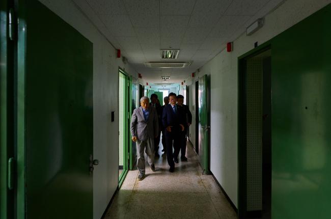 이 대통령은 故 박종철 열사가 고문을 받다 숨진 509호와, 민주화운동청년연합 의장으로 활동하다 고문을 당했던 故 김근태 전 의원의 조사실인 515호를 포함해 전시공간 전체를 둘러봤다.