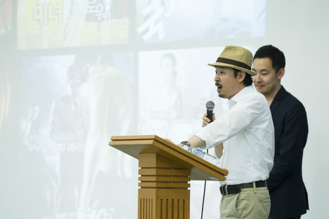 김호성 대표가 강연을 하고 있다.그들은 21세기 문화 산업이 흘러가는 양상과 프로듀서가 가져야 하는 글로벌 인간관계에 대해 강연했다. 강연 후 열띤 질의와 응답으로 분위기가 한층 고조되었다. 특히 리더가 가져야 할 마음가짐을 이야기하며, 24개국 대학생들에게 겸비하고, 경청하며 사고하는 마인드에 대해 깊이 생각할 수 있는 기회였다.